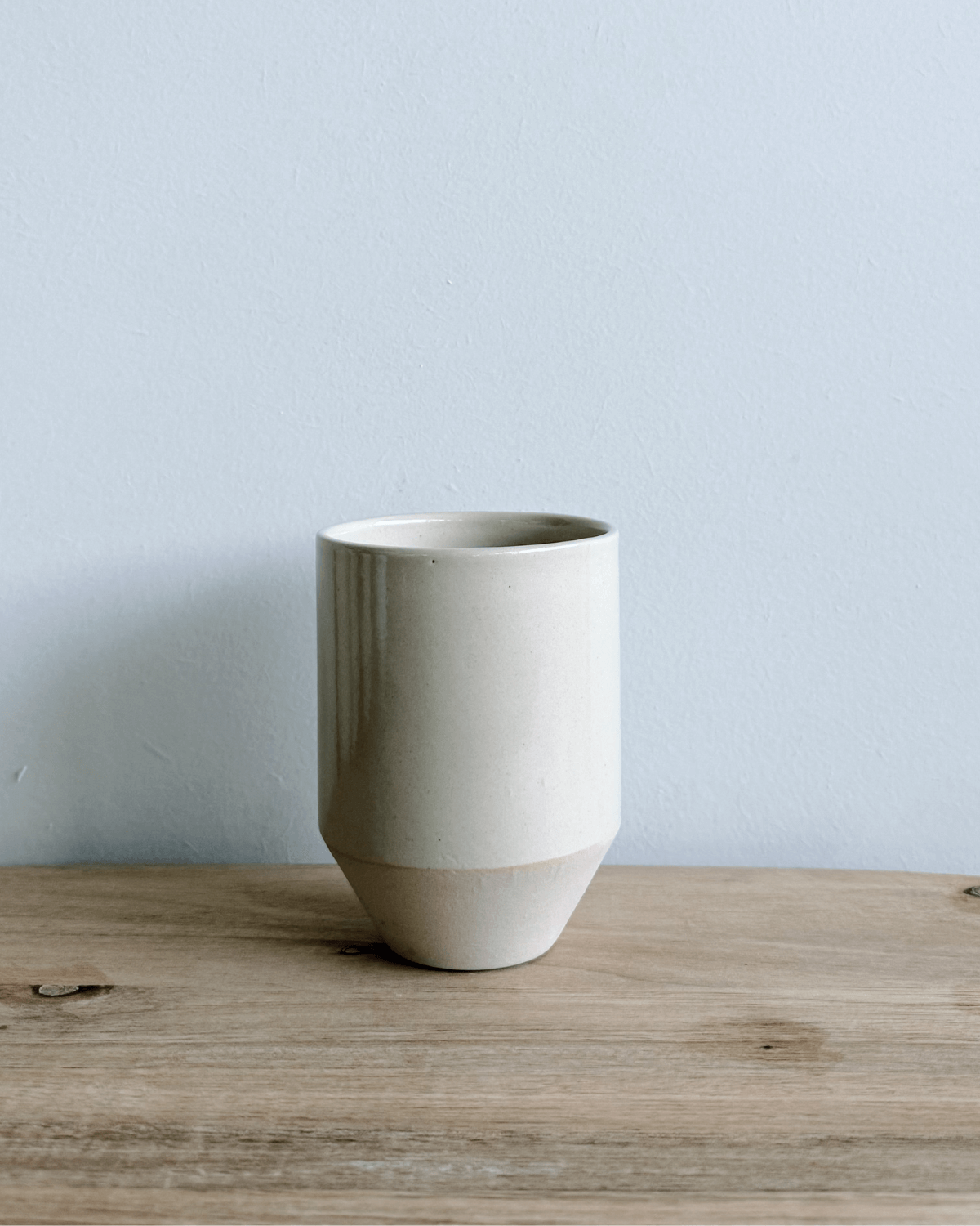 En elegant håndlavet kop i en smuk transparent nude glasur. Koppen er designet til hverdagen, og er både enkel og funktionel.