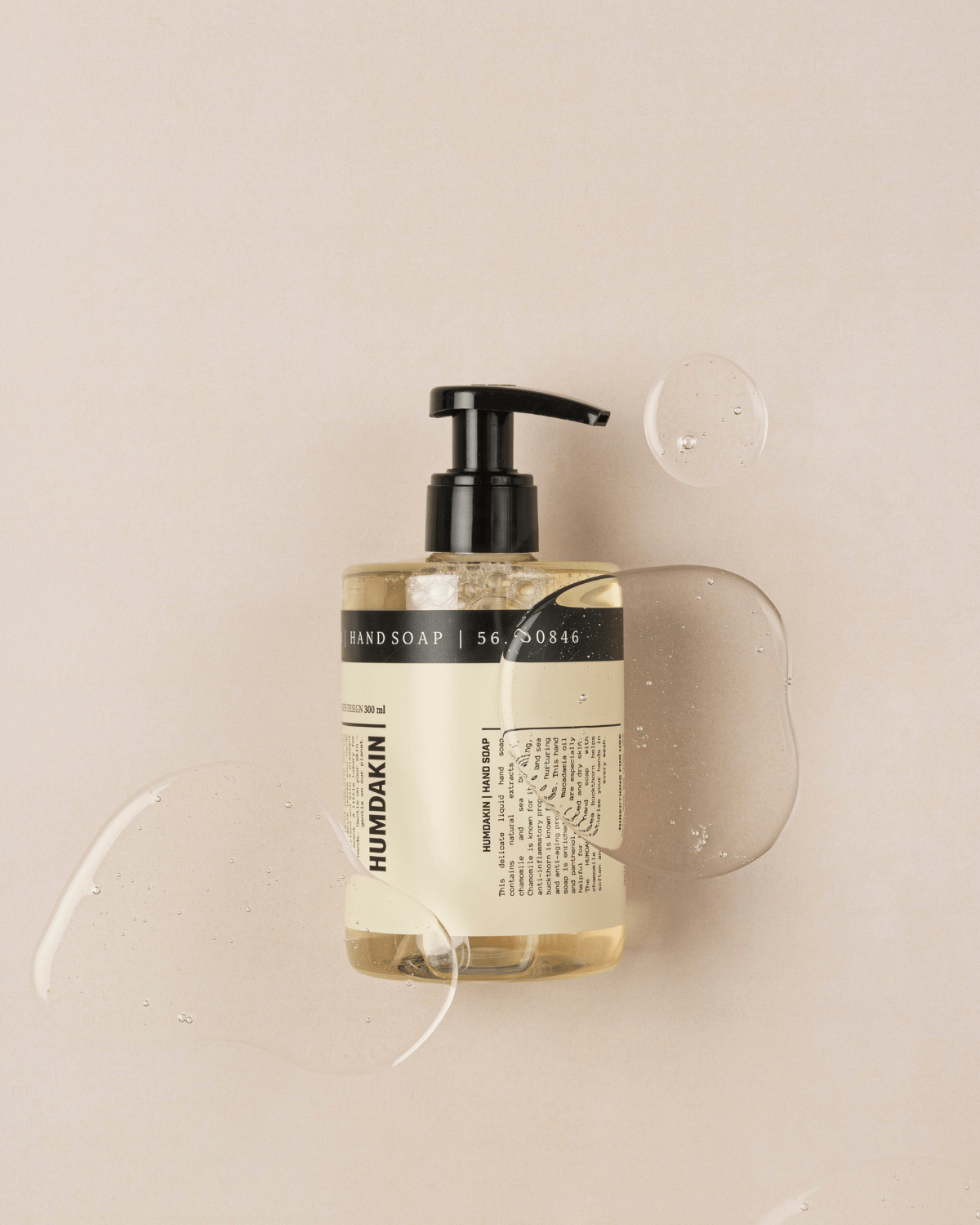 Håndsæben er beriget med macadamiaolie og panthenol, som afhjælper irriteret og tør hud.