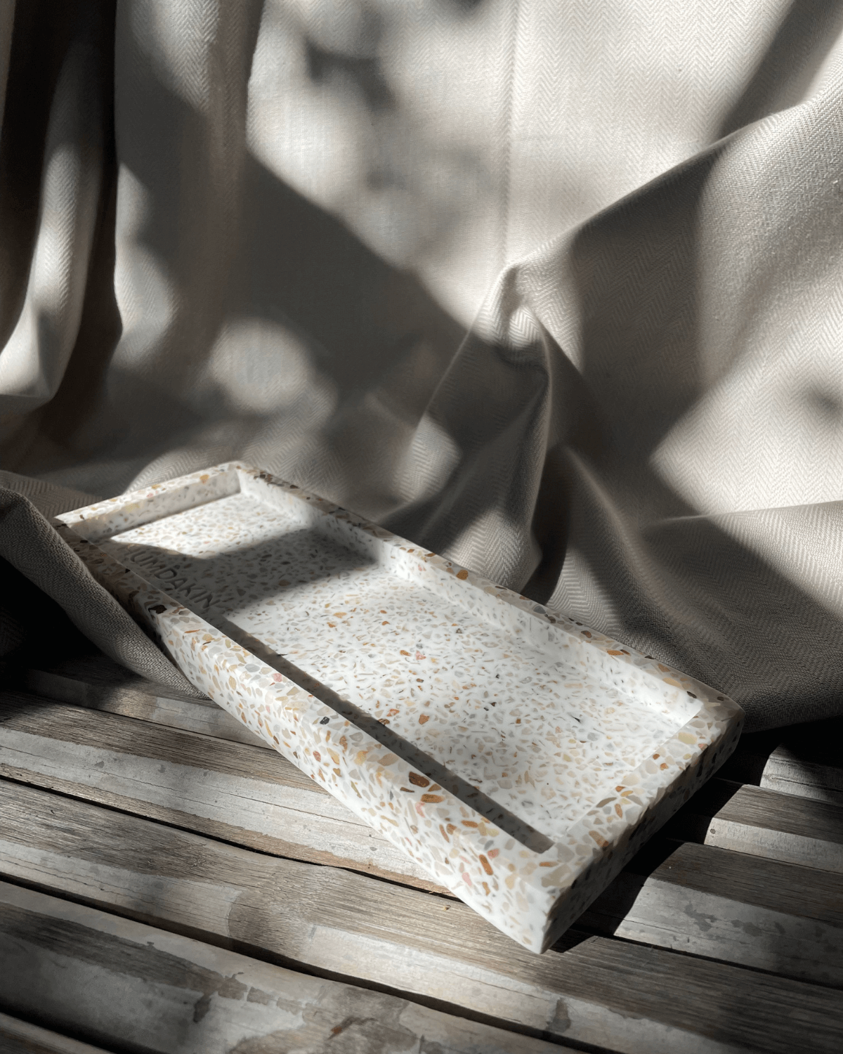 Brug bakken til at fremhæve stearinlys, blomster, krydderier og olier, eller anvend den på badeværelset til at arrangere dine yndlingsprodukter og sæber. Det tidløse terrazzo-design giver en elegant og moderne touch til enhver indretning.
