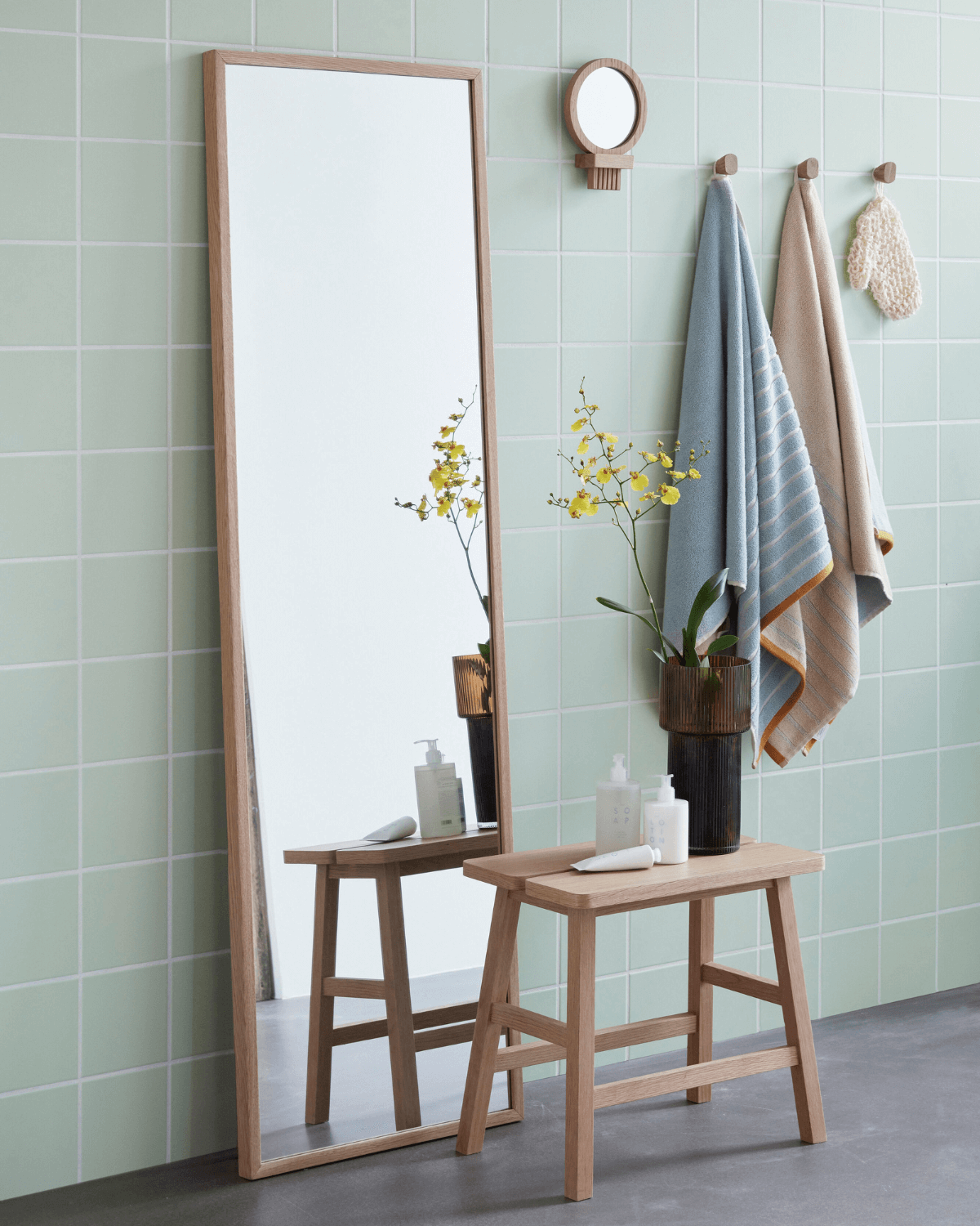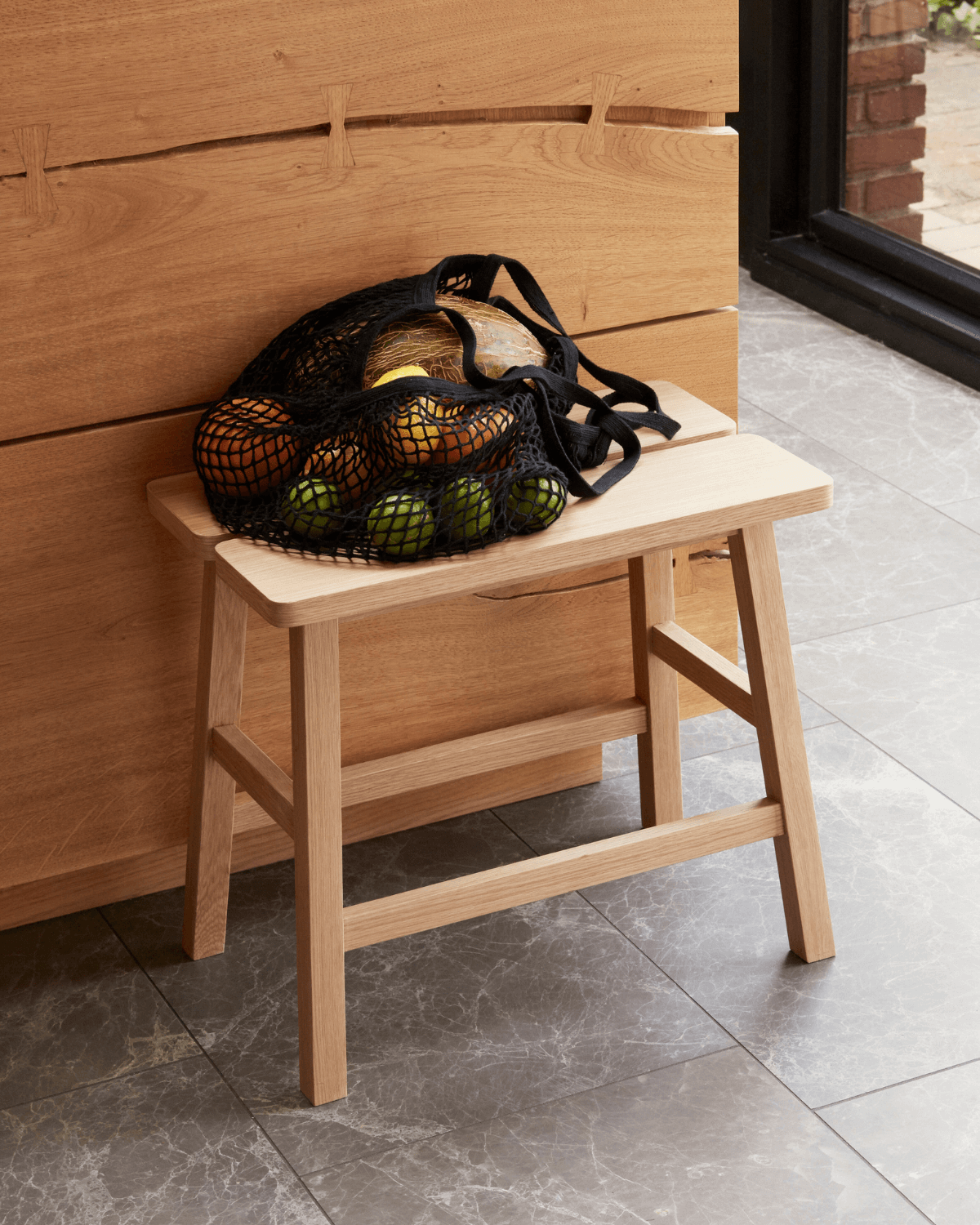 Denne skammel er i et enkelt og minimalistisk design. Skamlen er lavet af FSC®-certificeret egetræ og egetræsfiner. Den kan let placeres i din entré, i dit soveværelse, eller evt. i køkkkenet.
