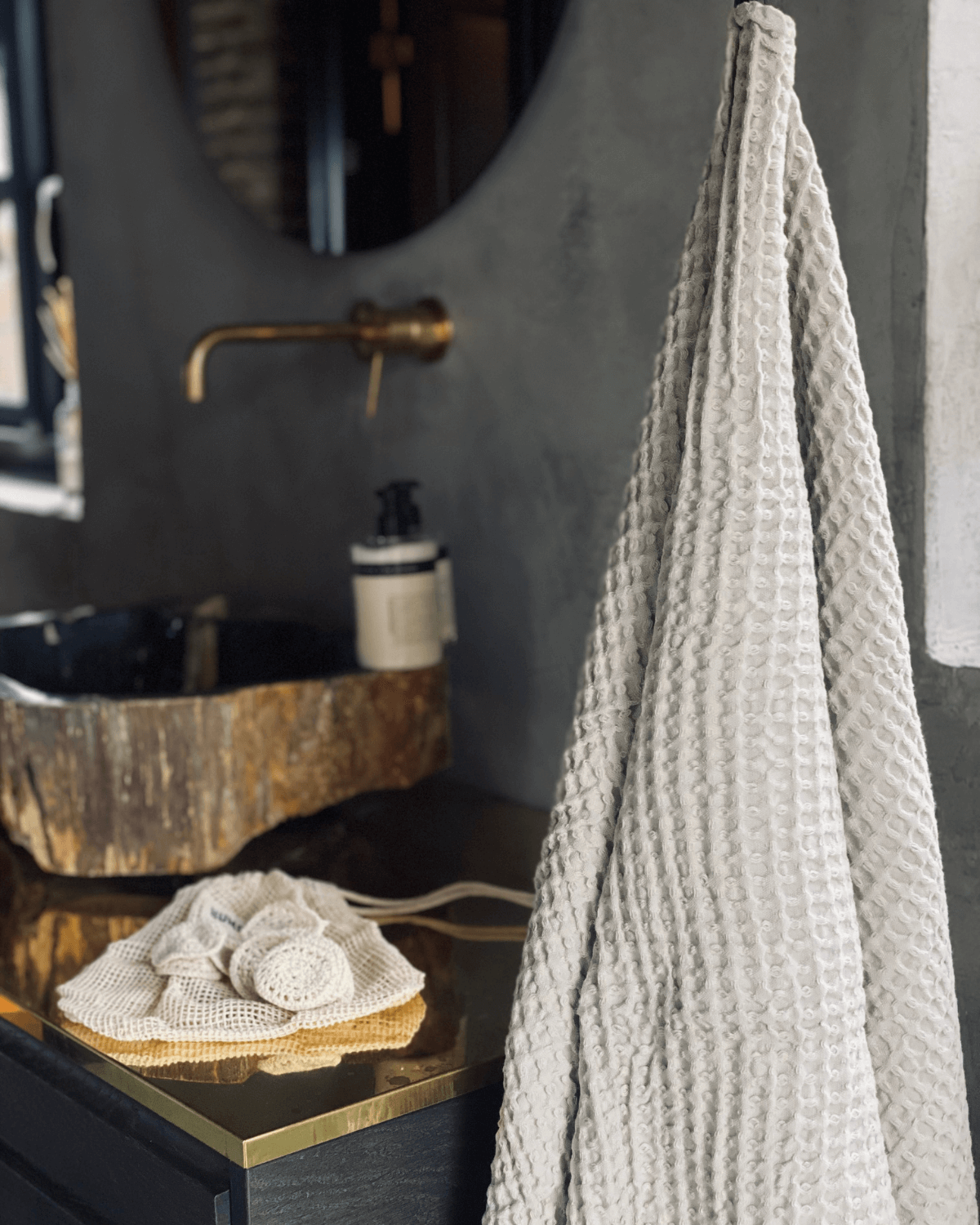 Efter vask får håndklædet den mere karakteristiske vaffeleffekt, som gør håndklædet ekstremt blødt.