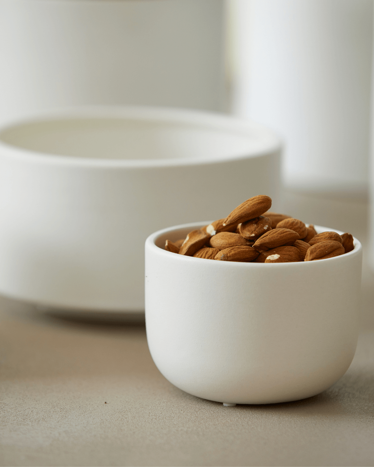 Brug skålen til små planter, nips eller snacks – dens enkle form gør den lige anvendelig som urtepotte, serveringsskål eller dekorativ detalje i hjemmet.