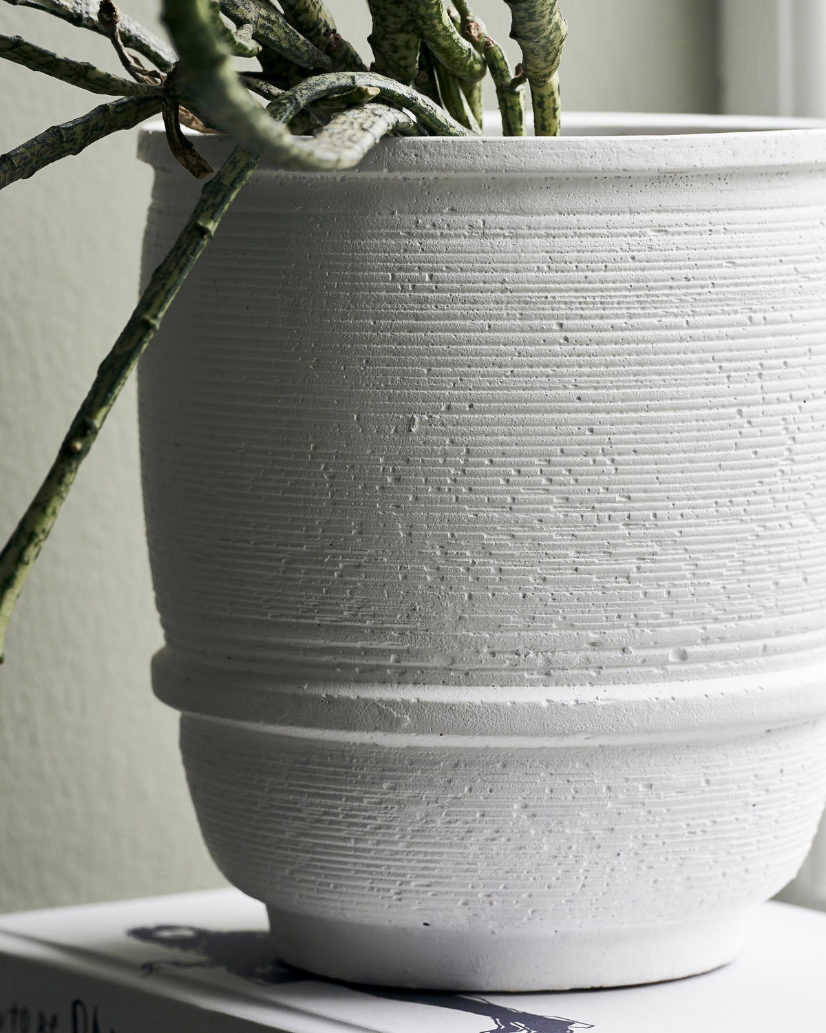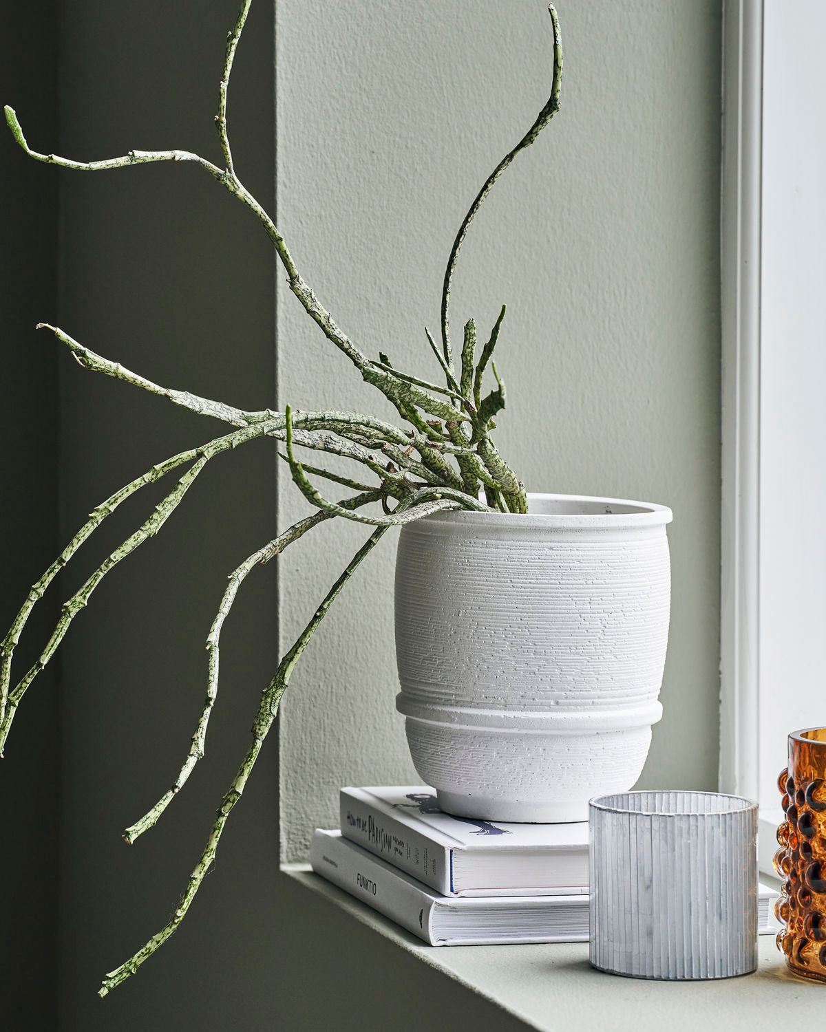 Små detaljer kan gøre underværker for din indretning. Ground er en hvid cementurtepotteskjuler fra House Doctor til at skabe den rette atmosfære.