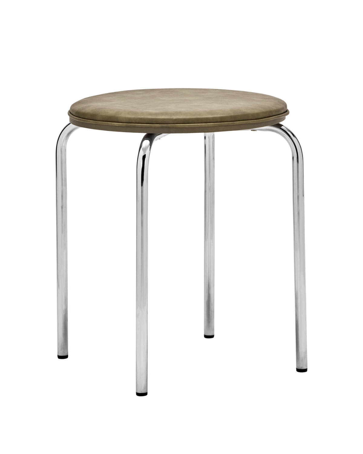 Giv din indretning et strejf af moderne minimalisme med skamlen Comma fra House Doctor. Det bløde, polstrede sæde i varm kakifarve danner en smuk kontrast til det slanke stel i blankt krom. Resultatet er et design, der balancerer det rå industrielle med det indbydende og varme.