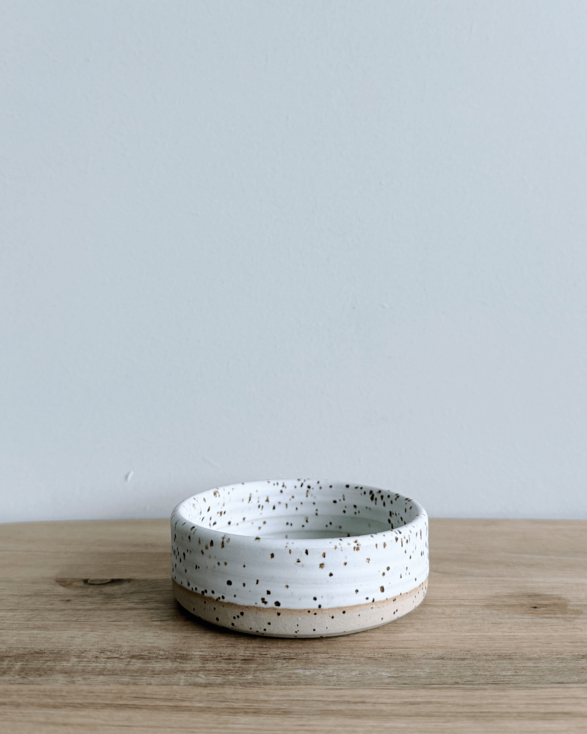 Den lille skål i en hvid rå glasur fra Émber keramik er et fint lille hverdagsobjekt, der hurtigt bliver uundværligt i køkkenet og på bordet. Brug den som saltkar ved komfuret eller server små lækkerier som oliven, nødder og snacks – eller style den på en bakke med et lys for ekstra hygge.