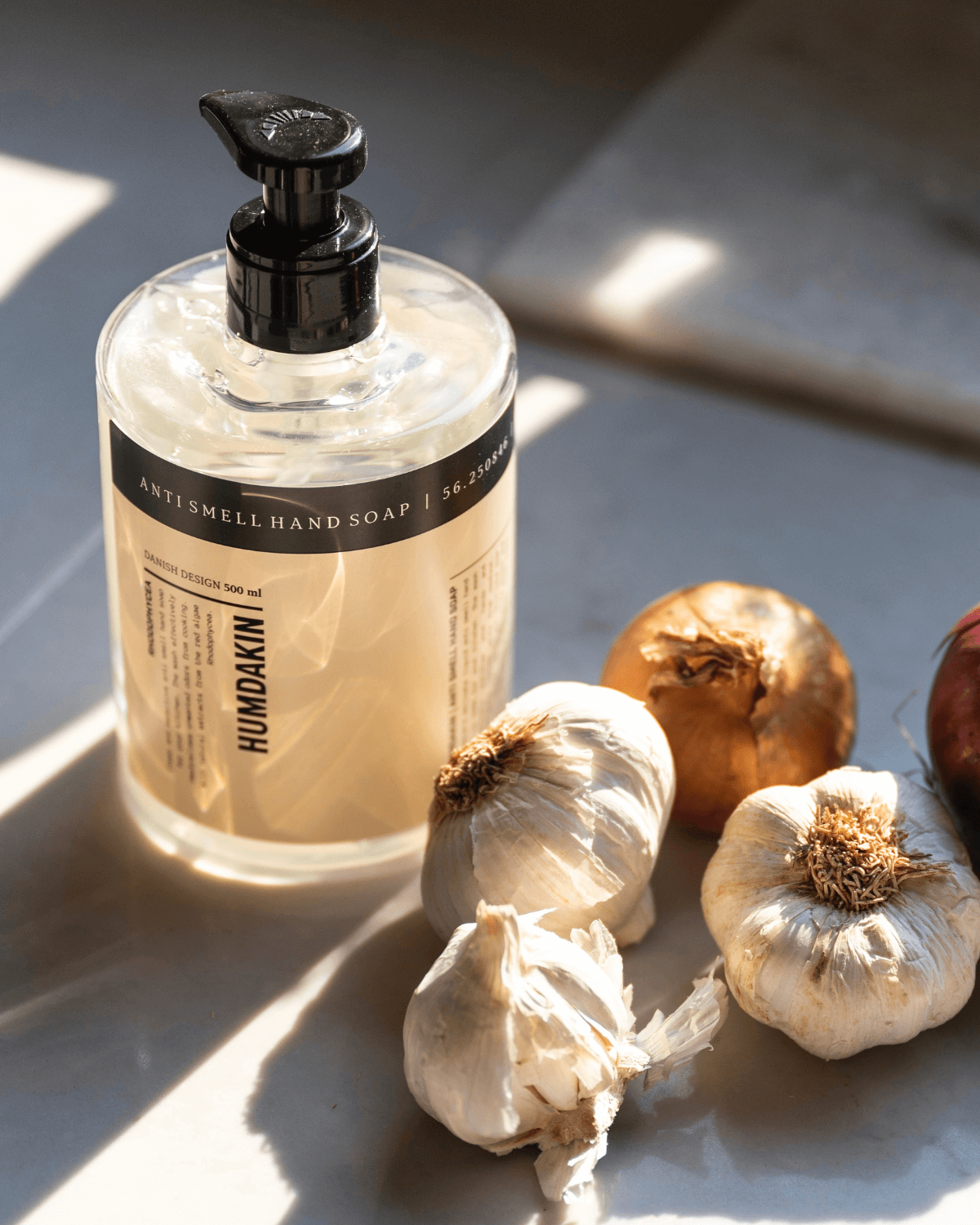 Anti-smell håndsæben er en plejende håndsæbe med en dejlig duft, der effektivt renser dine hænder og straks fjerner lugt fra skaldyr, løg, ost, hvidløg osv.