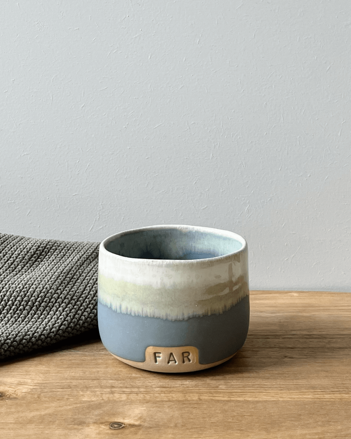 Vårhus står bag denne smukke kop, der passer perfekt til en kop kaffe, the eller evt. som en lille urtepotte.