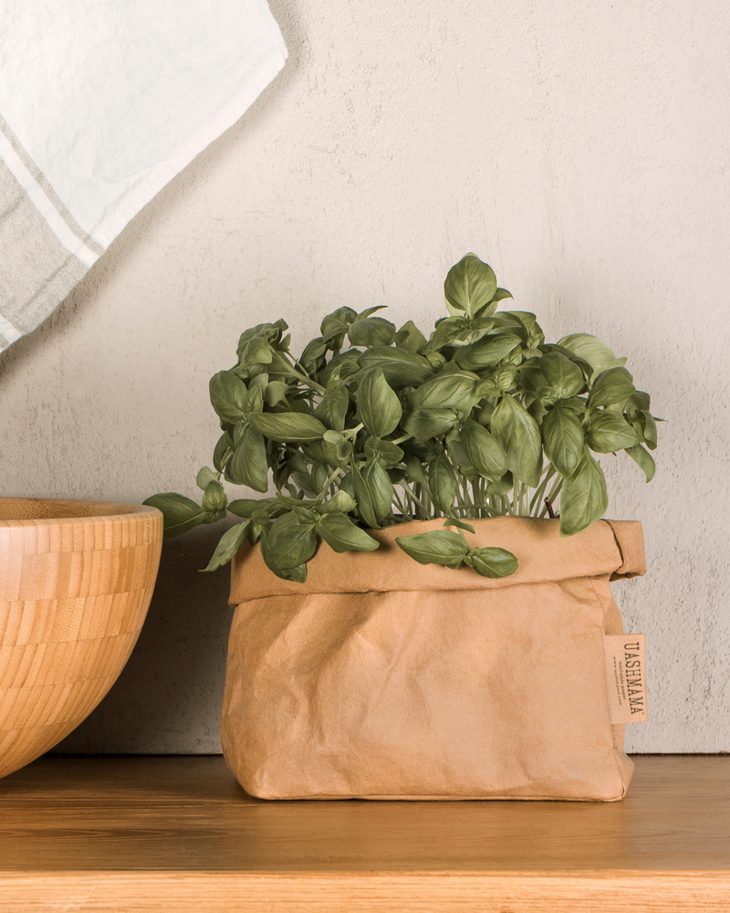 En af de mest unikke opbevaringsløsninger i vores sortiment er de populære paper bags fra Uashmama. Disse poser er fremstillet i Italien og lavet af en specielt behandlet cellulosefiber, som føles som læder, men som er langt lettere og kan vaskes. Uashmamas paper bags er et fantastisk alternativ til traditionelle kurve og plastbokse, da de er både fleksible, holdbare og smukke at se på.