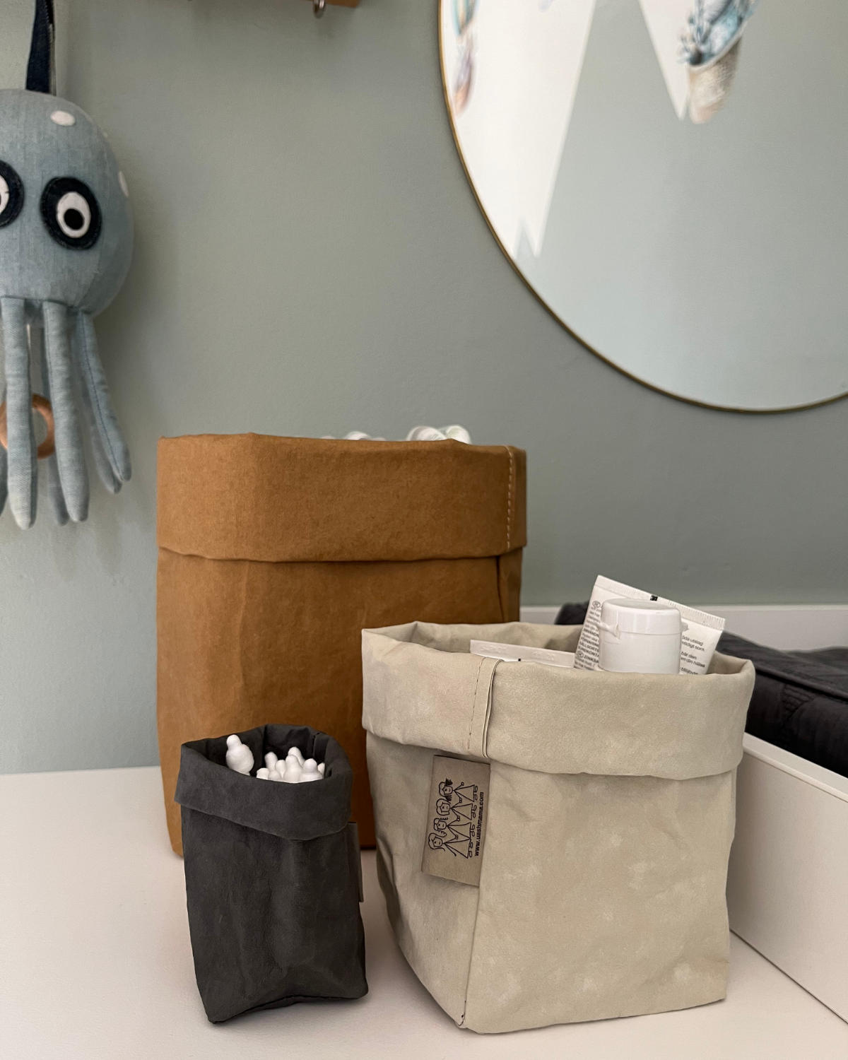 Denne lille paper bag er idéel til bl.a. vatpinde på badeværelset, til klips på kontoret eller til smykker.