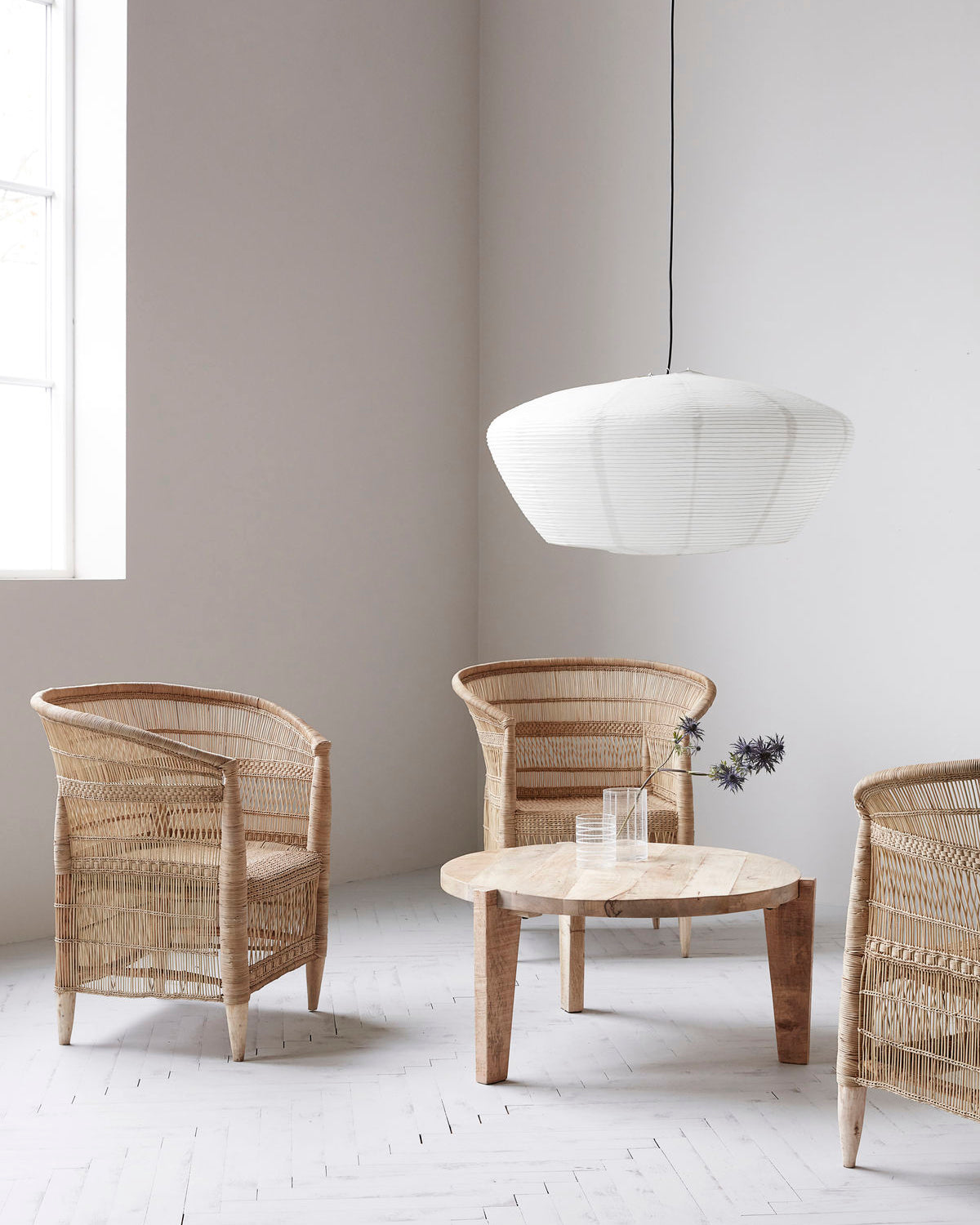 På grund af den stilrene og naturlige farve samt smukke form kan lampeskærmen bruges i ethvert rum i hjemmet. Lad den tale for sig selv ved at hænge den for sig selv over et bord, eller hæng flere sammen i et hjørne af rummet for at skabe volumen.