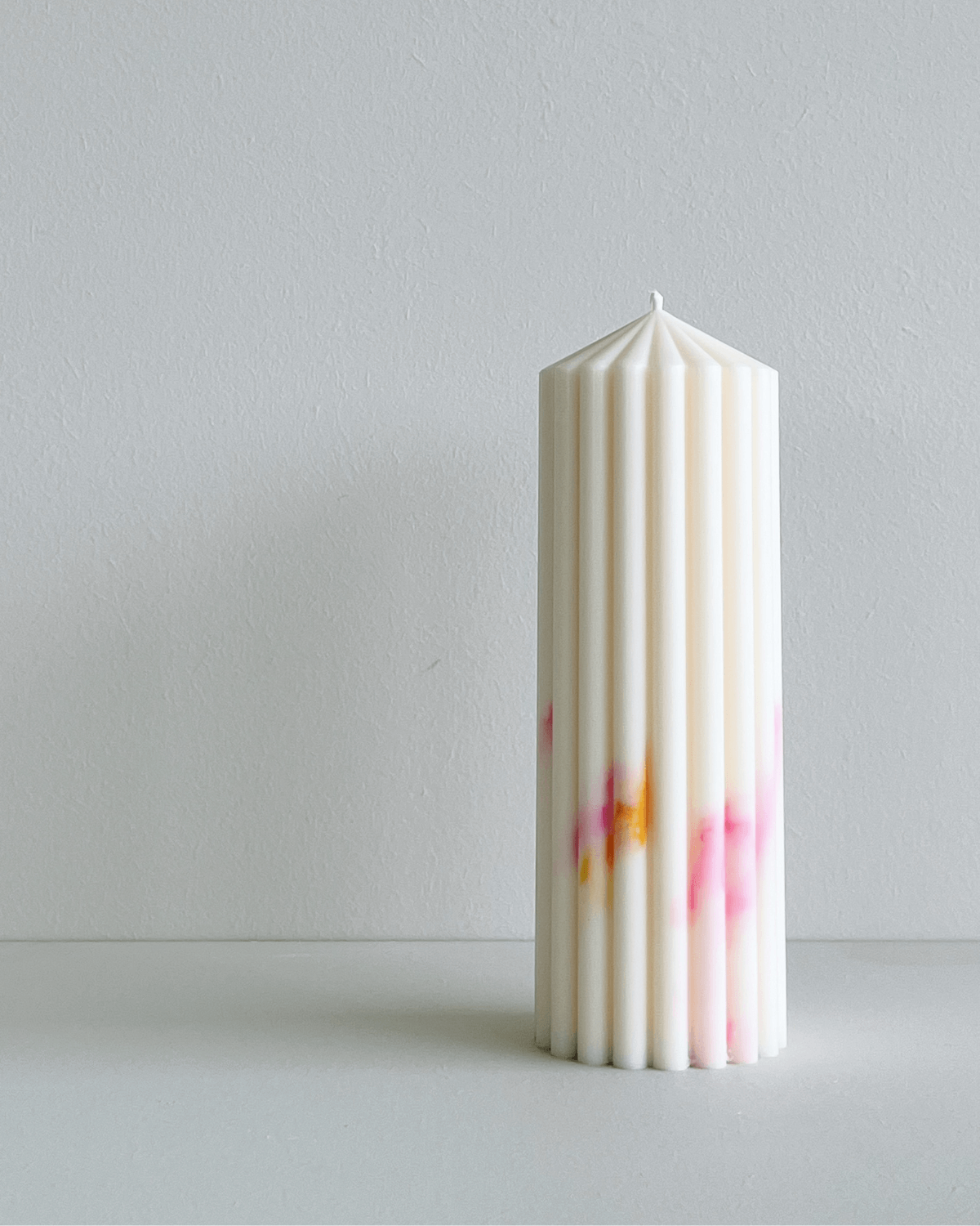 Da de skulpturelle lys er håndlavede, vil der være en naturlig variation i farve og form. Små luftbobler eller små hvide pletter "frosting" er en naturlig forekomst ved soyalys.
