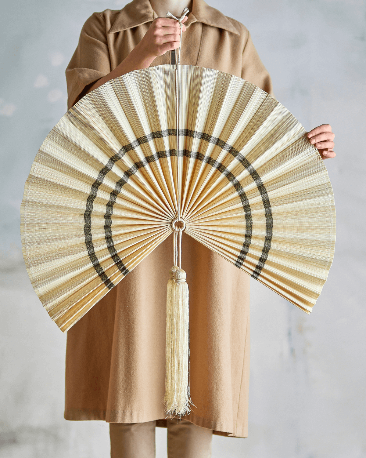 Jaime vægdekorationen fra Bloomingville er en elegant og dekorativ vifte skabt i lys bambus med diskrete mørke detaljer, der giver et harmonisk og roligt udtryk. Den naturlige farve fremhæver bambusens struktur og gør viften til et smukt, let element på væggen, uanset om du placerer den i stuen, gangen, soveværelset eller på kontoret.