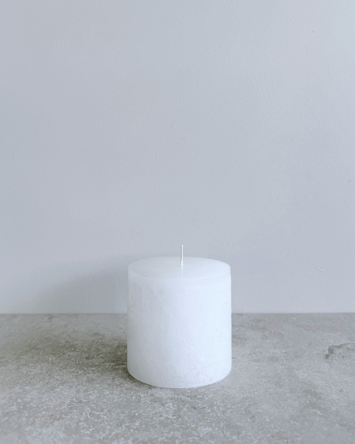1 stk. bloklys fra Vance Kitira i en klassisk hvid. Lyset måler 7,5 cm højden og er 8 cm i diameteren.