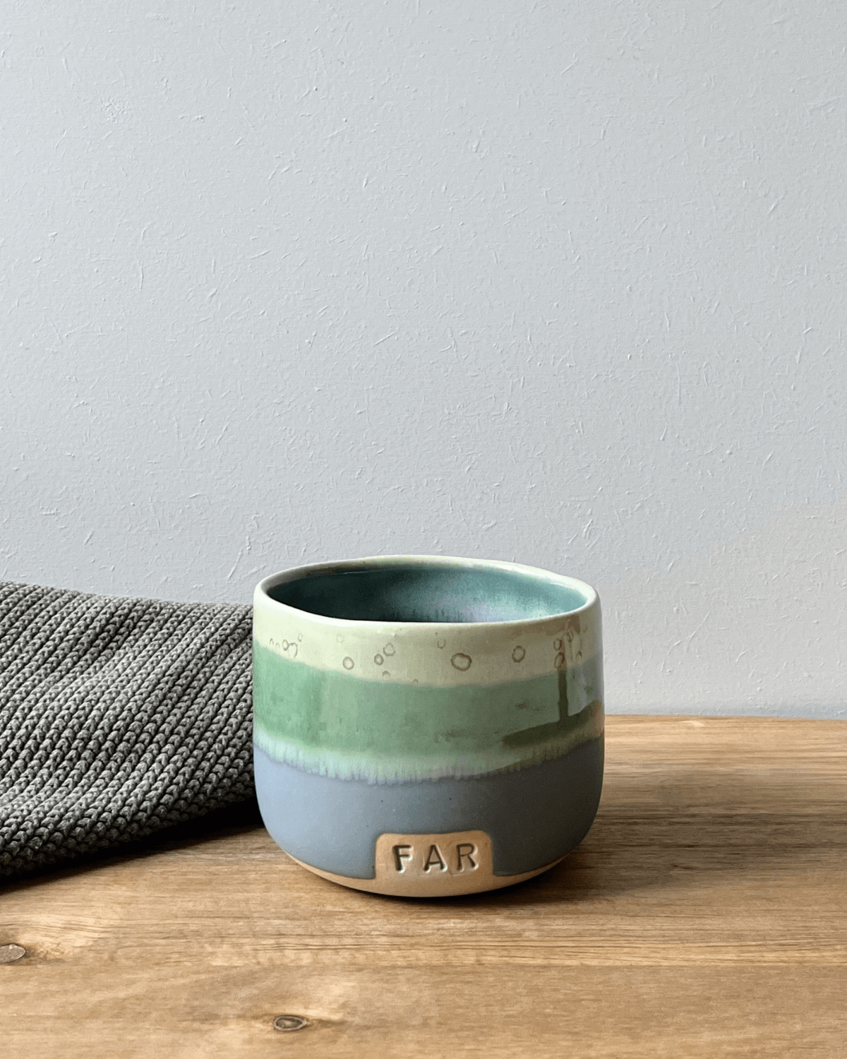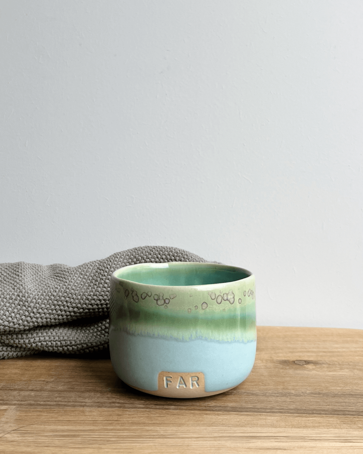 Vårhus står bag denne smukke kop, der passer perfekt til en kop kaffe, the eller evt. som en lille urtepotte.