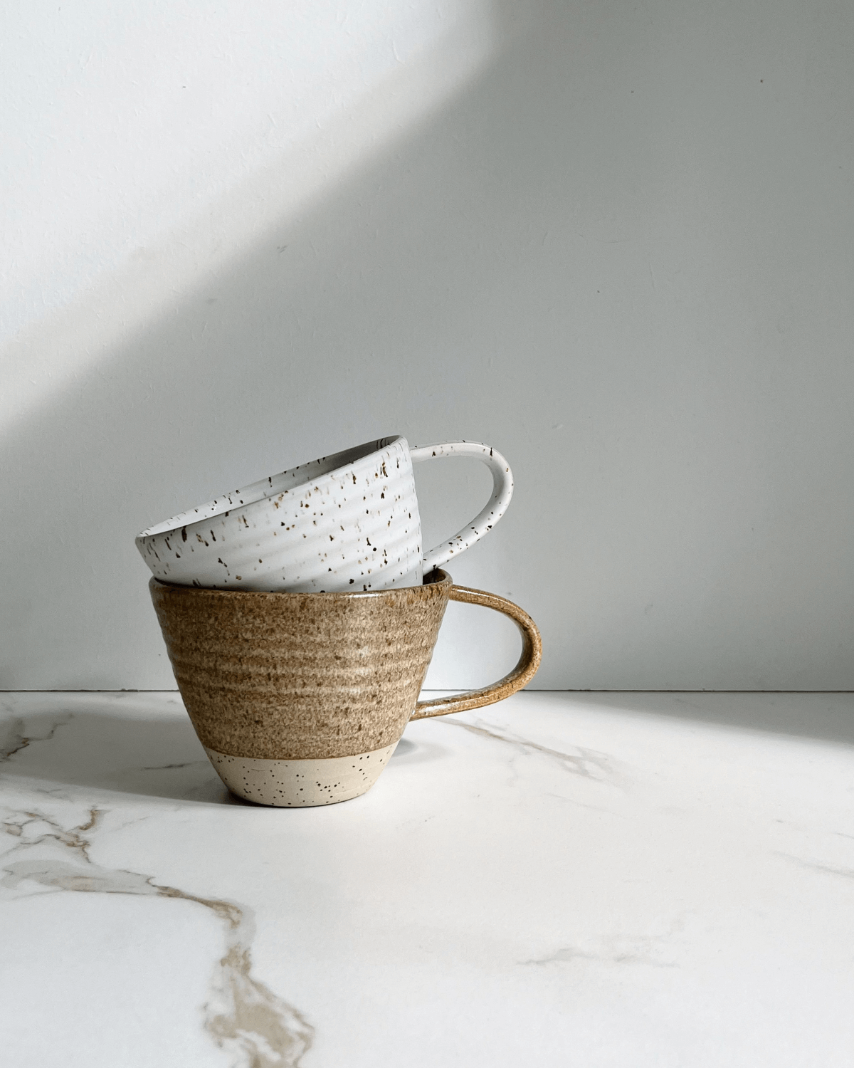 Kopperne er lavet i stentøjs-ler, og kan derfor tåle at komme i opvaskemaskinen.