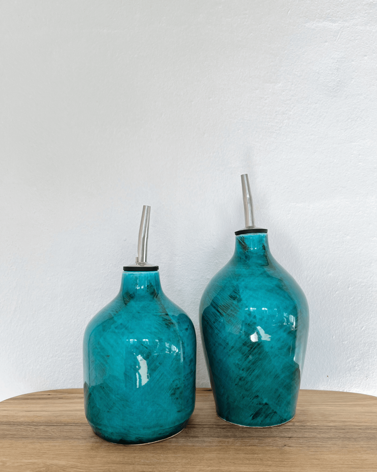 Hver oliekande er unik, da den er håndlavet efter traditionelle teknikker. De smukke oliekander giver ikke kun et rustikt og autentisk udtryk, men sikrer også, at olien holdes frisk og beskyttet mod lys og luft.